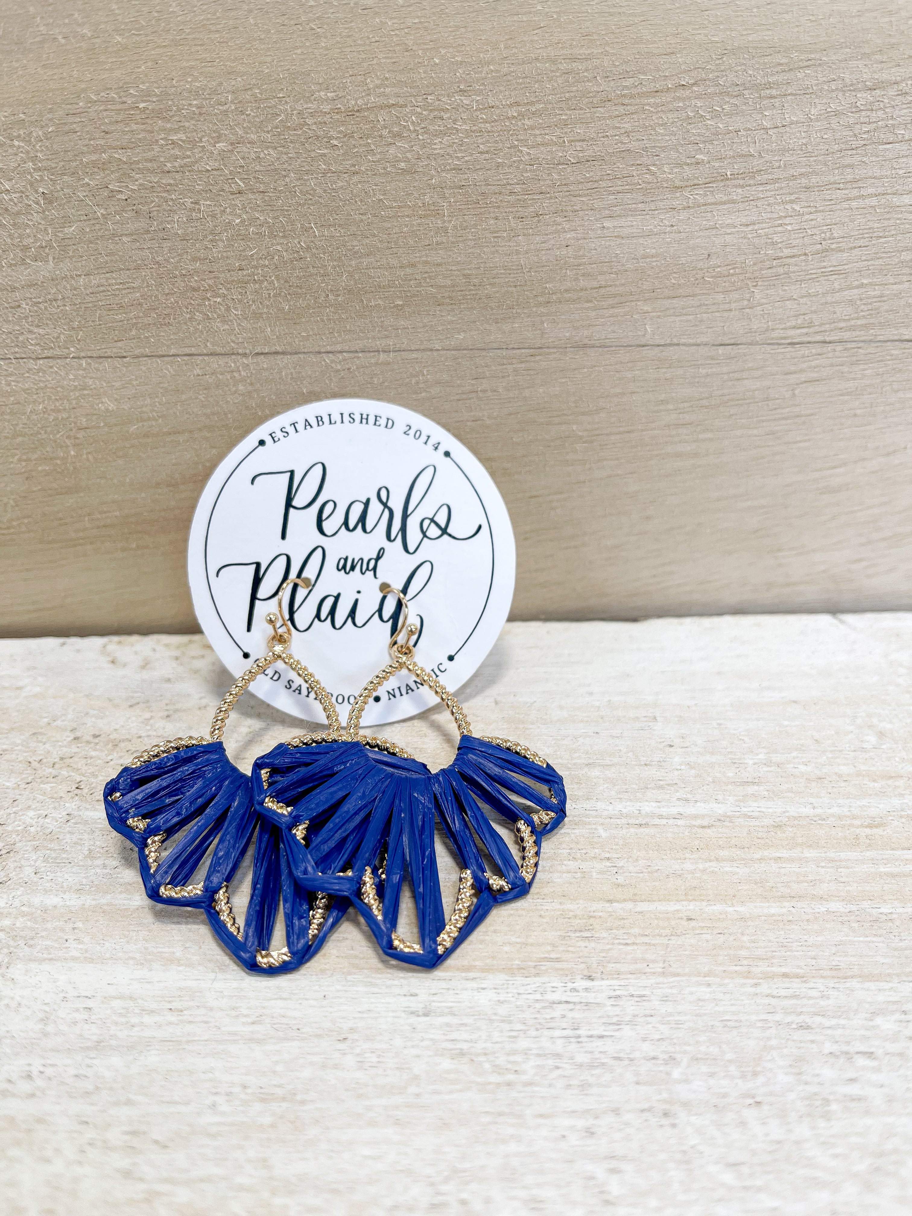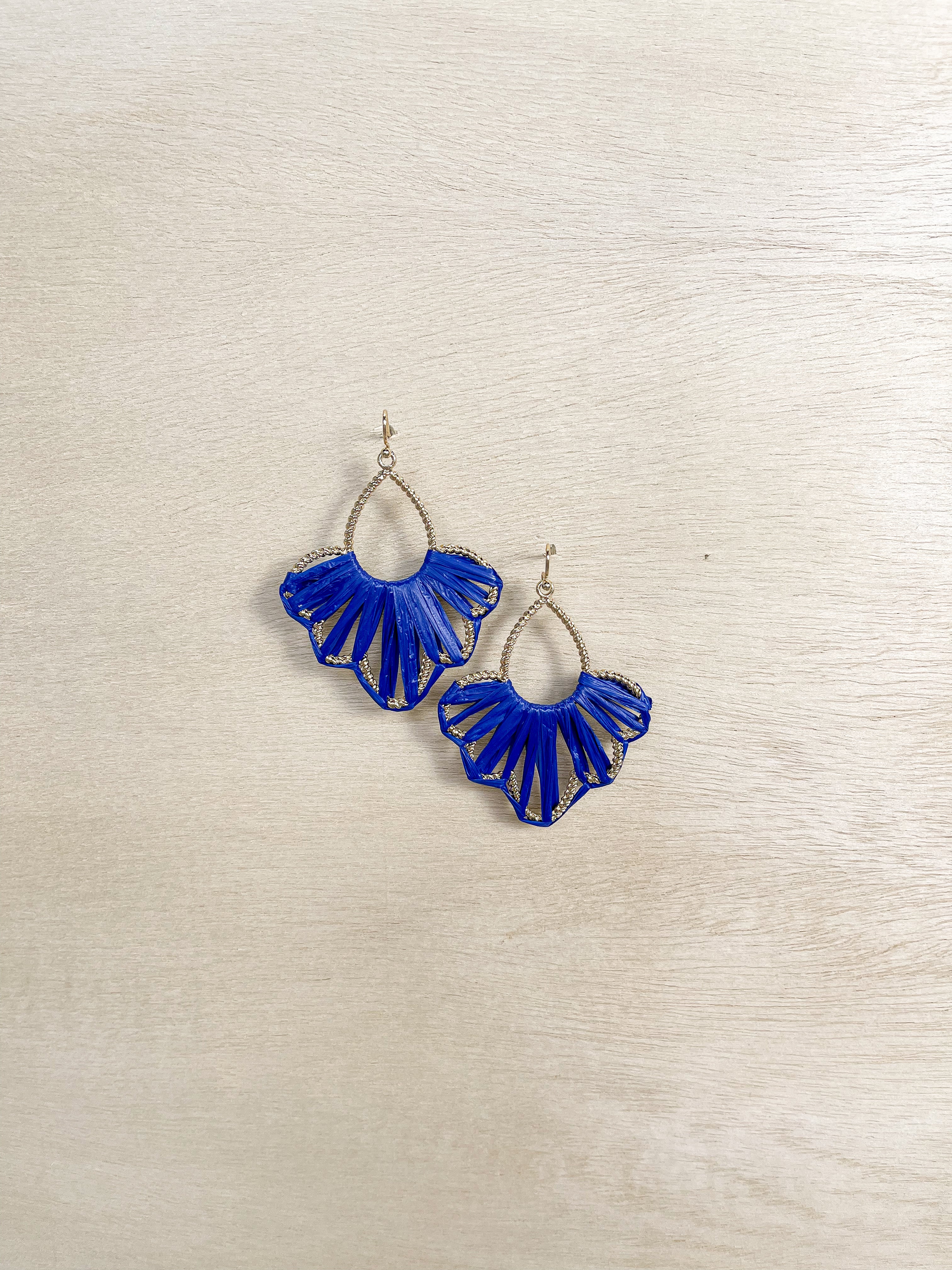 Stay cool in the heat and turn heads with these Boho Royal Blue Woven Straw Drop Earrings. Woven with royal blue straw around gold drops, these earrings are a fun and unique addition to any outfit (and a great conversation starter!).