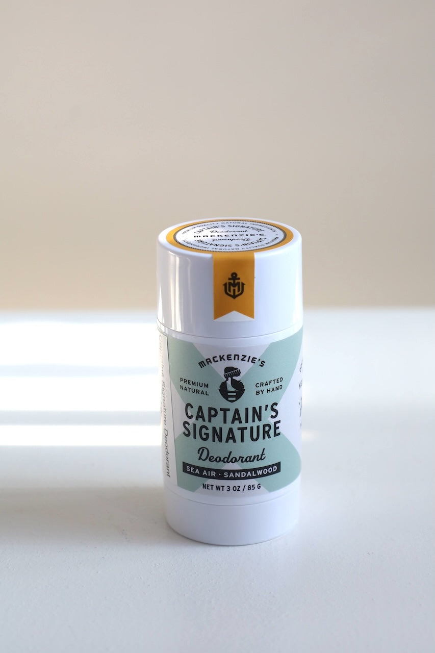 With the fresh scent of Sea Air & Sandalwood, Captain’s Signature Deodorant is powered with plant-derived ingredients and designed for everyday life. This odor busting formula achieves long-lasting effectiveness and underarm freshness without harsh chemicals, aluminum, parabens, sulfates, or dyes. From morning to night, we’ll keep you confident with a natural deodorant that truly works.