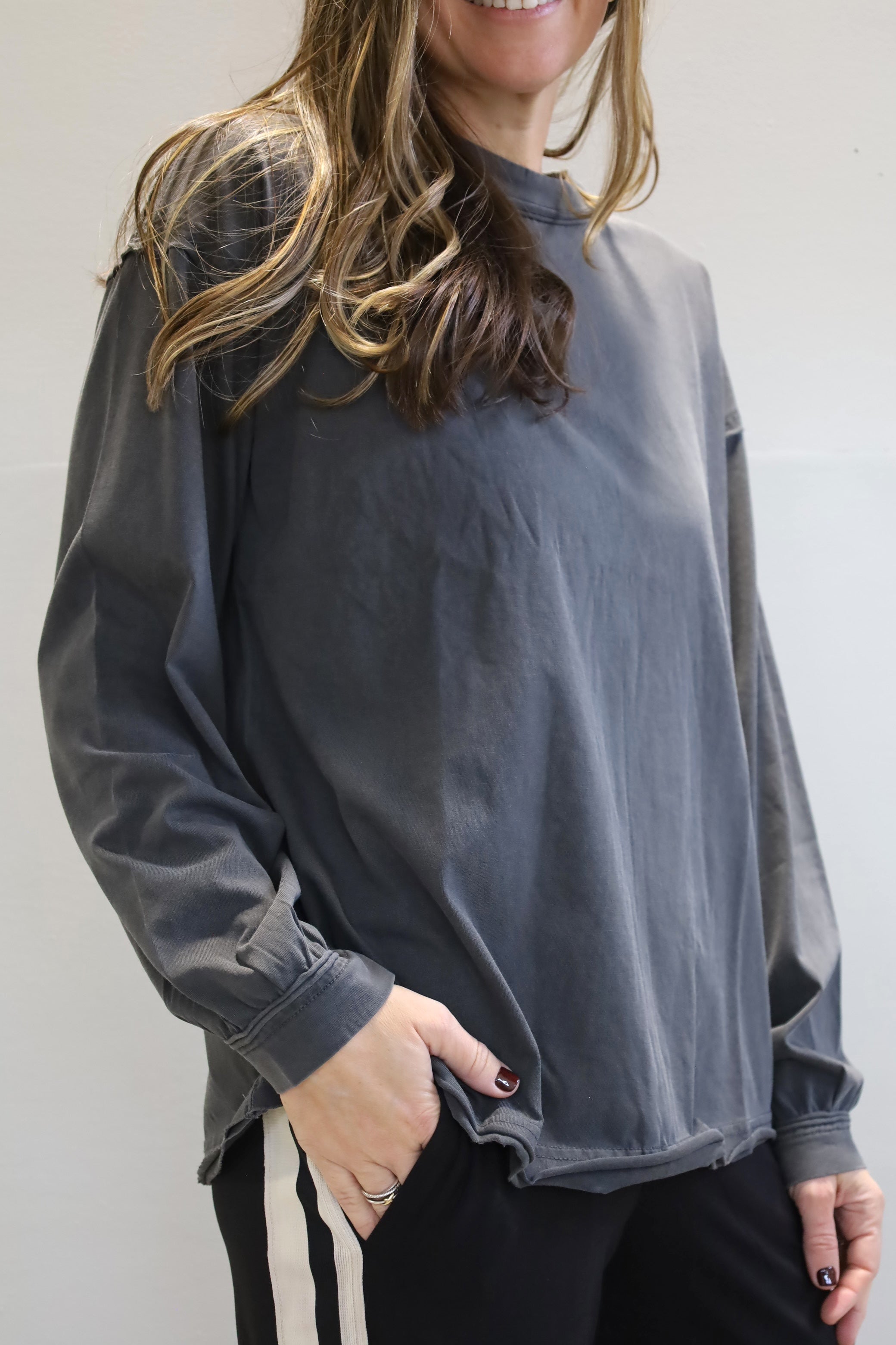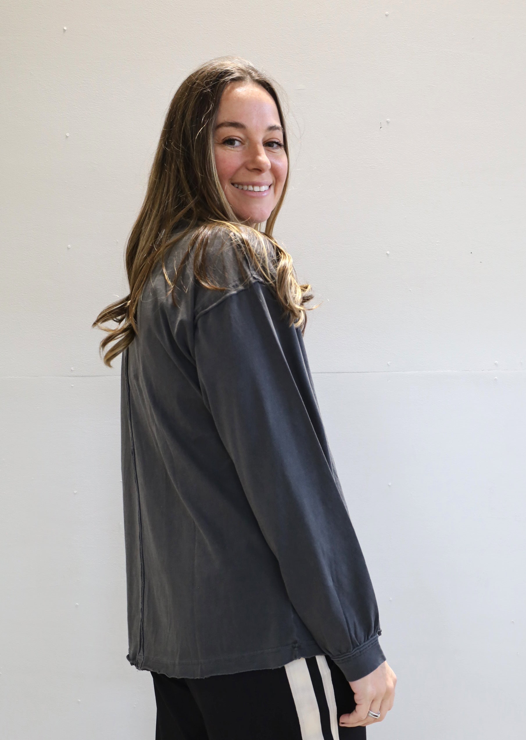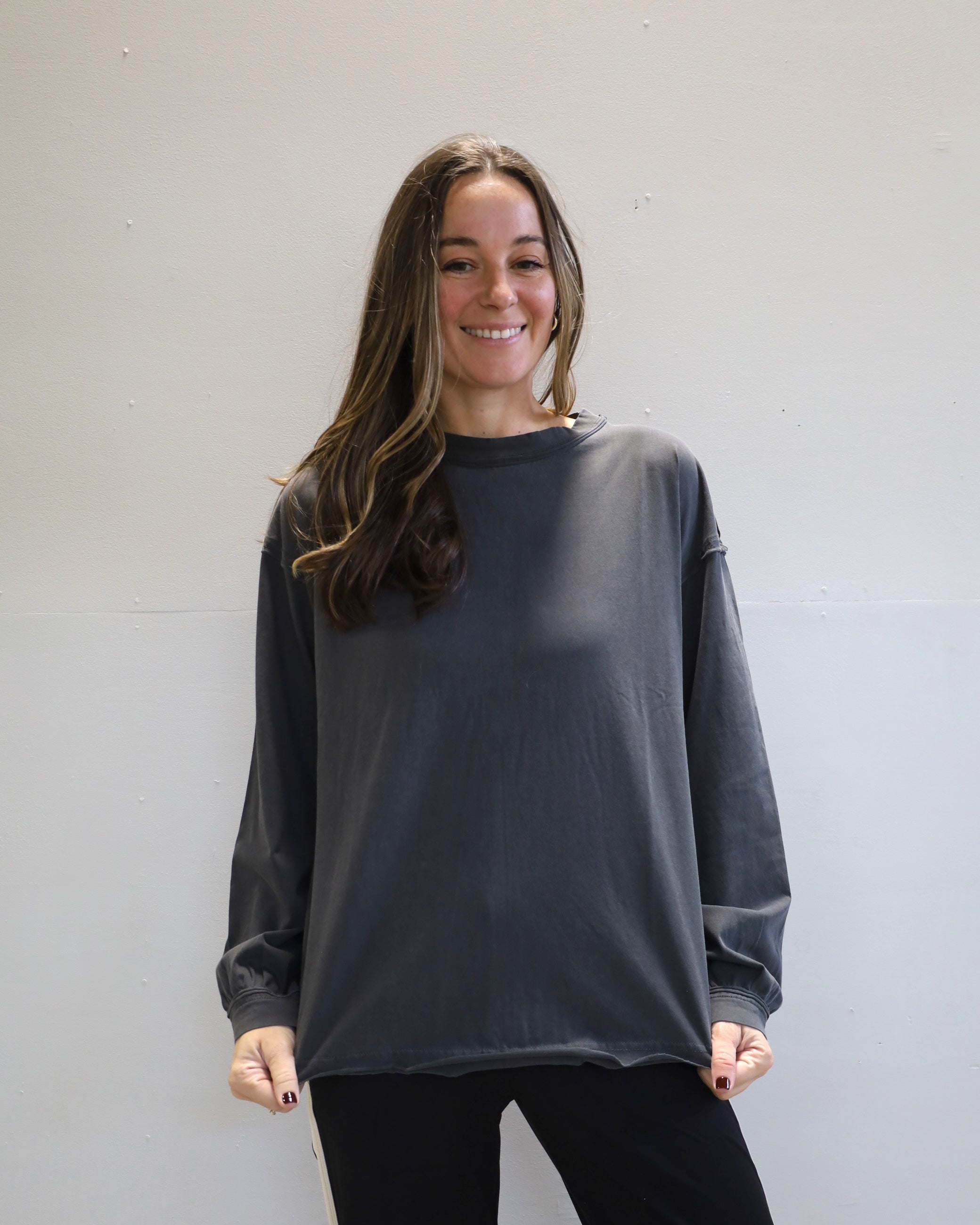 THE ultimate everyday essential! This ultra-soft, oversized, long-sleeve tee features a vintage wash and a raw hem for that perfect lived-in feel. It’s the versatile staple you’ll reach for day after day.