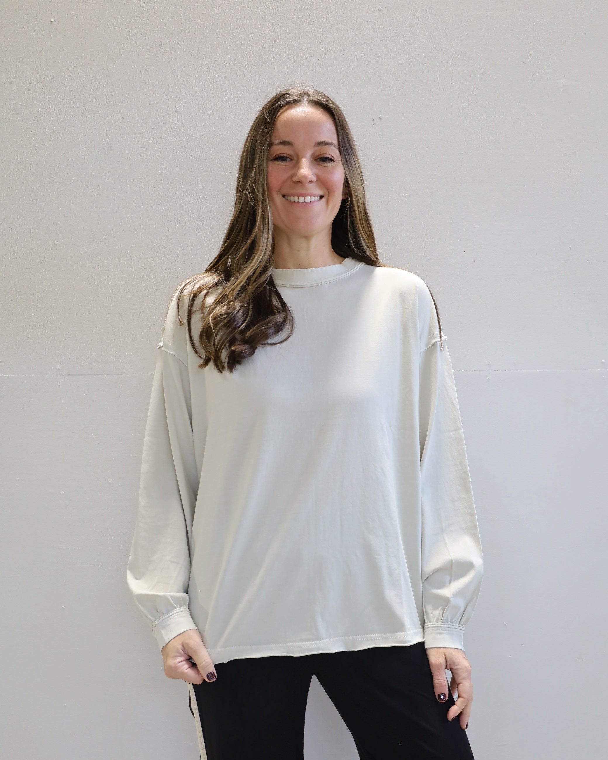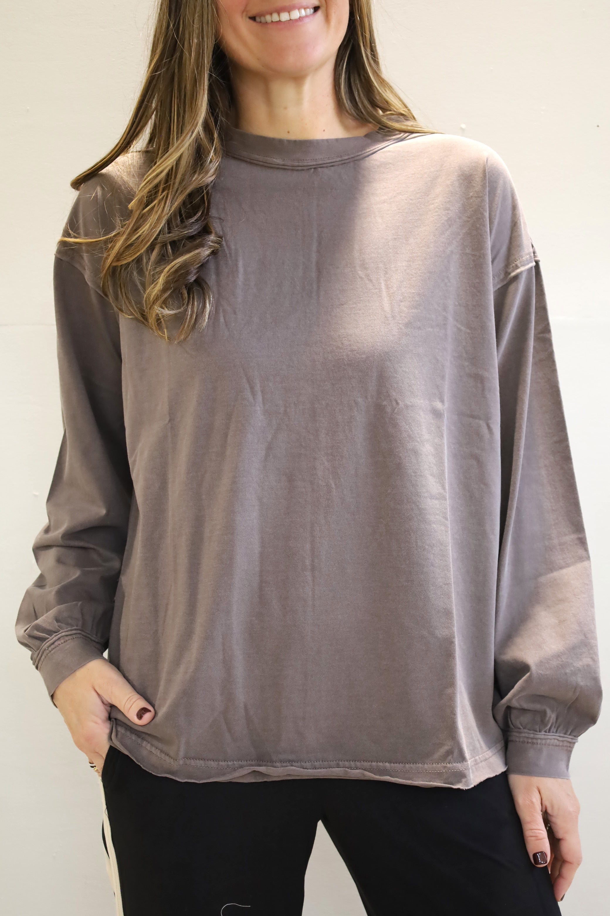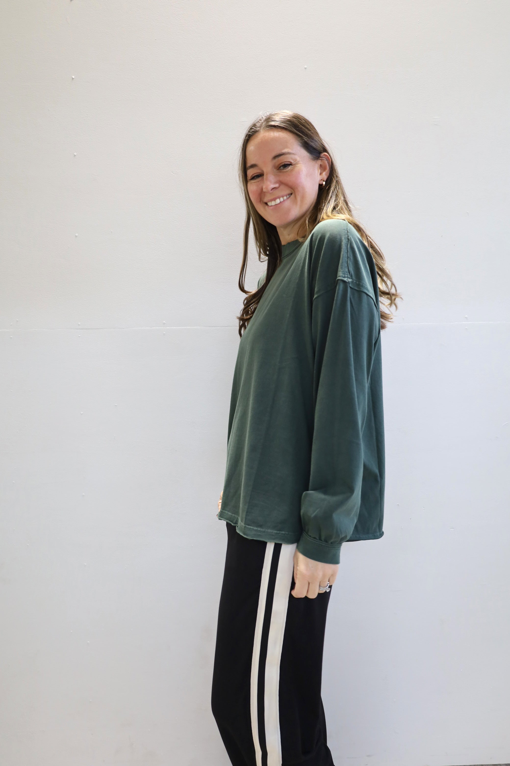 THE ultimate everyday essential! This ultra-soft, oversized, long-sleeve tee features a vintage wash and a raw hem for that perfect lived-in feel. It’s the versatile staple you’ll reach for day after day.