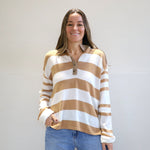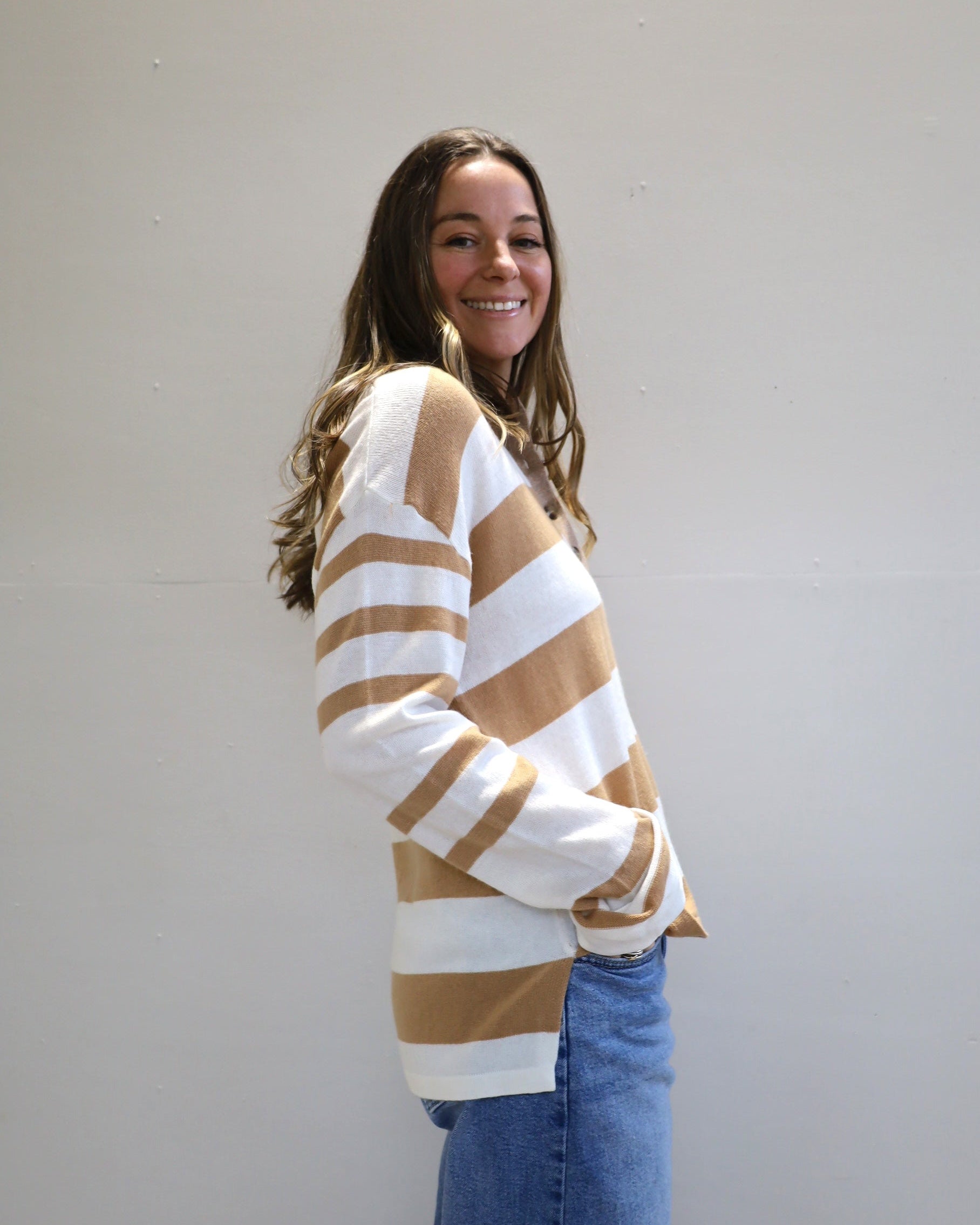A fresh take on casual—this striped long-sleeve polo blends soft beige and white tones with a relaxed fit and buttoned collar. Easy to wear and effortlessly styled, it’s your go-to for laid-back days while also feeling put together.