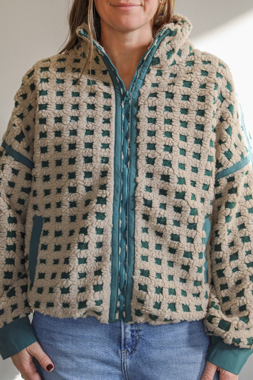 Gingham fleece? Count us in! This slightly oversized fit and cinched adjustable waistband is the perfect winter staple!