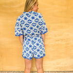 The Into The Tropics Shorts are a warm-weather must-have with their bold blue and white floral print, elastic waistband, and relaxed fit. Lightweight and playful, they’re perfect for pairing with the matching top or a simple white tank.