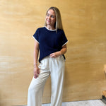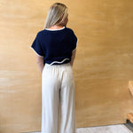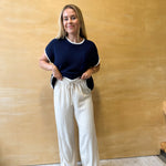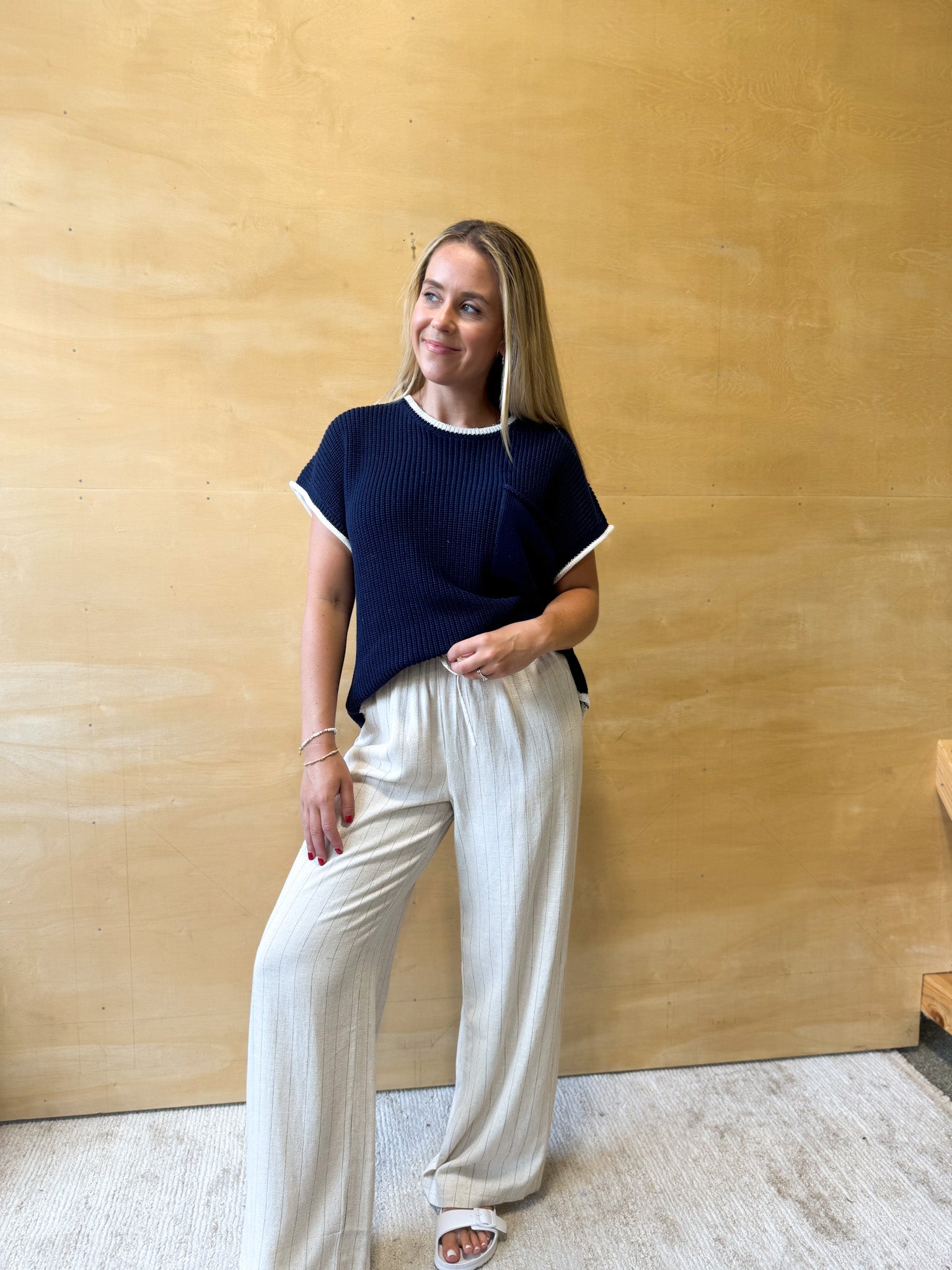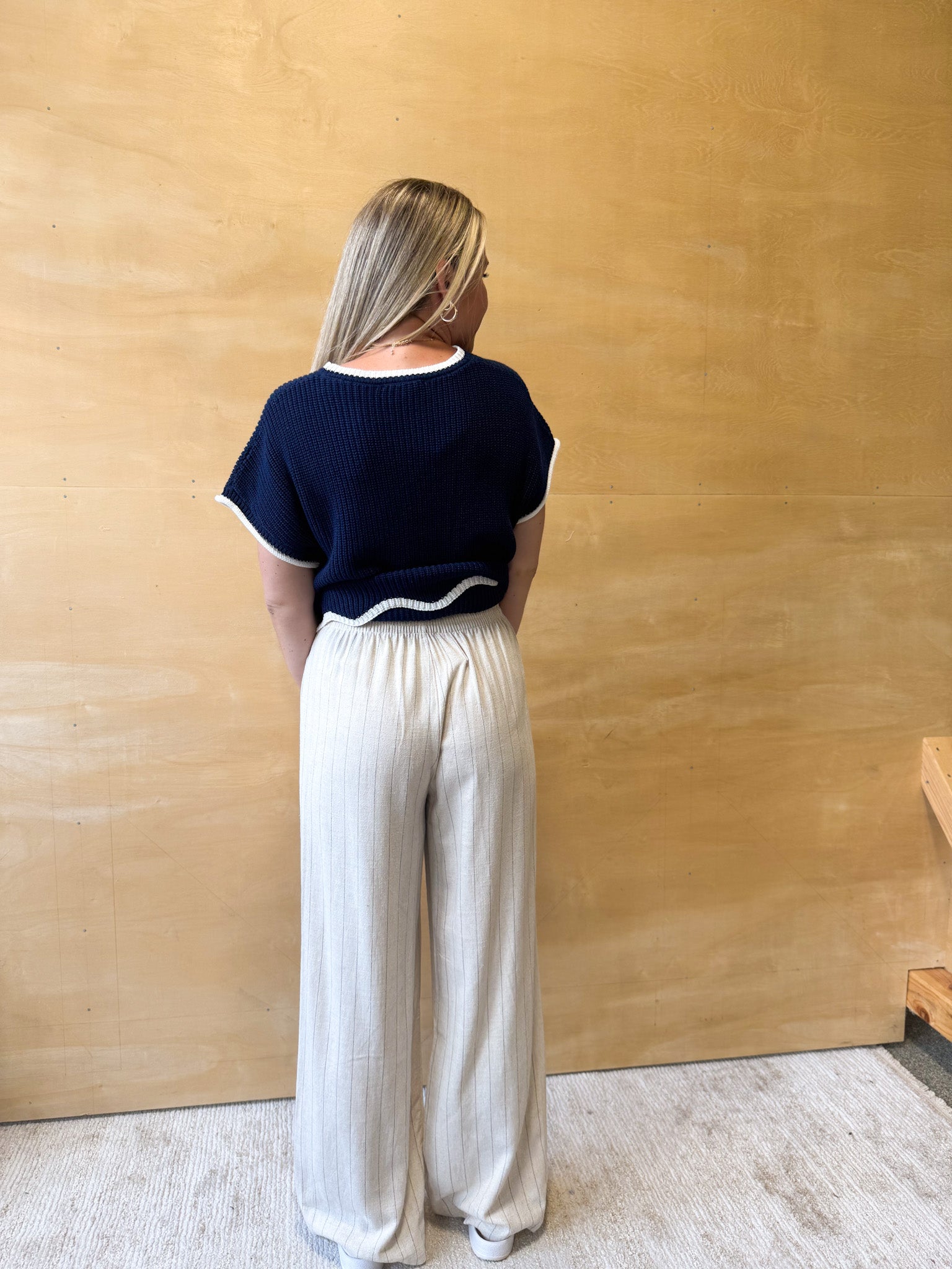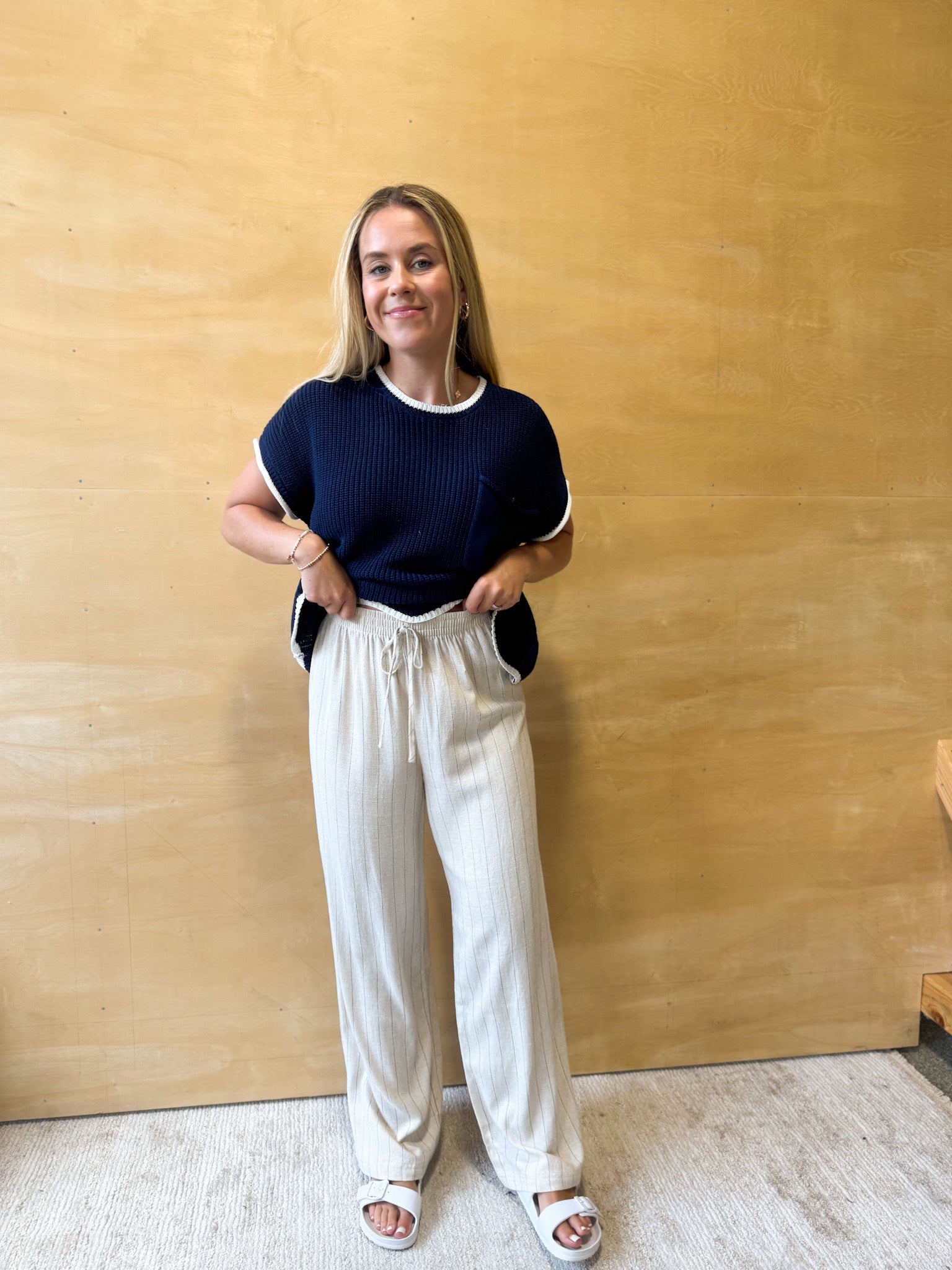 The Keep It Cool Pants are light, laid-back, and totally effortless—featuring a neutral pinstripe, drawstring waist, and breezy wide-leg fit. Perfect for pairing with tanks, knits, or your favorite button-down.