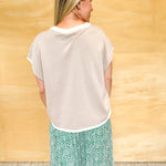 The Latte Love Top is a lightweight knit with a relaxed fit, soft beige body, and crisp white trim for that effortless neutral look. Easy to dress up or down, it's the perfect closet staple for layering or wearing solo.