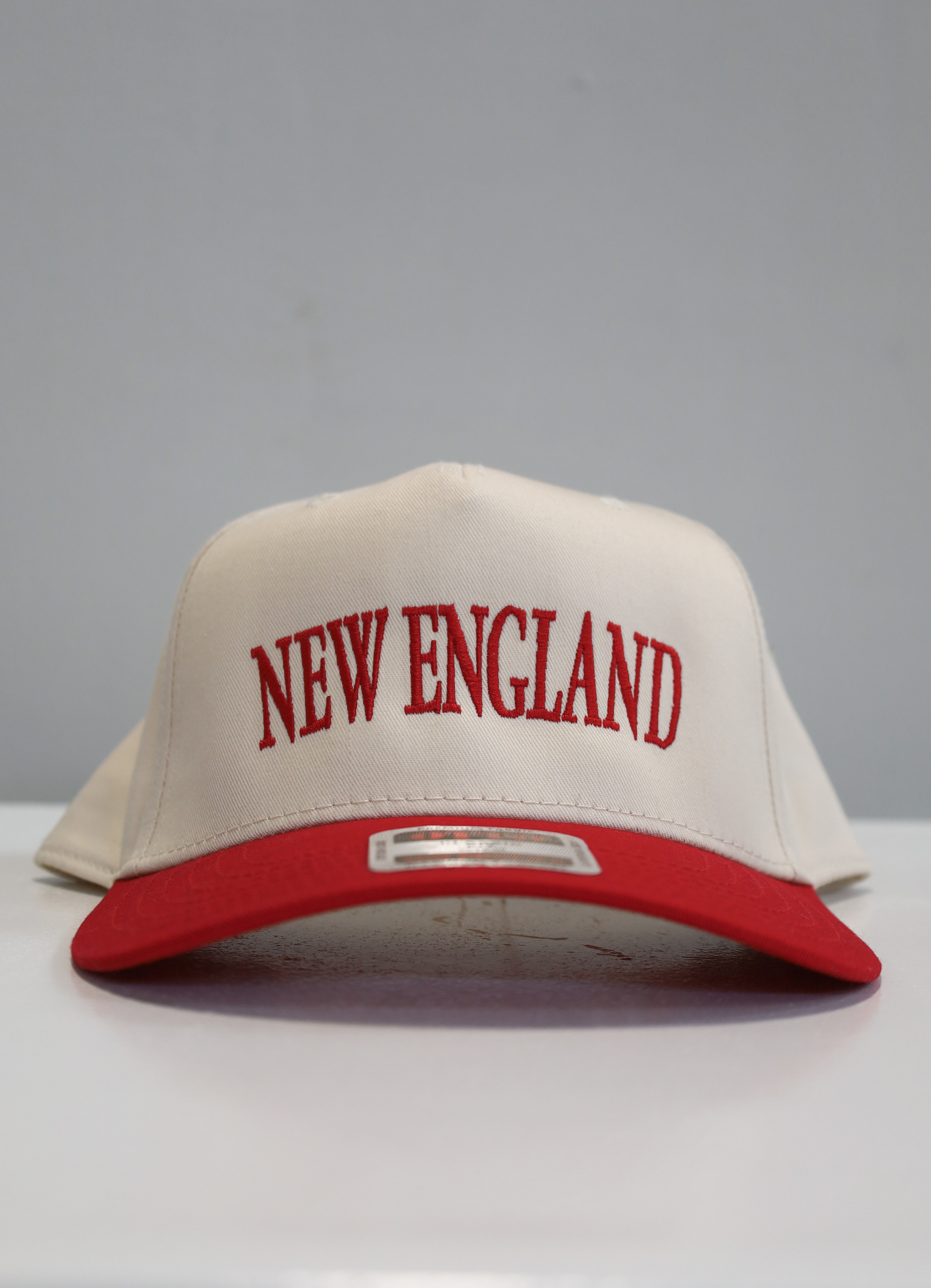 "The New England Hat in red is a timeless classic. Its embroidered design adds a fun touch, while the trucker style provides a comfortable fit. Show your love for New England with this stylish and versatile hat."