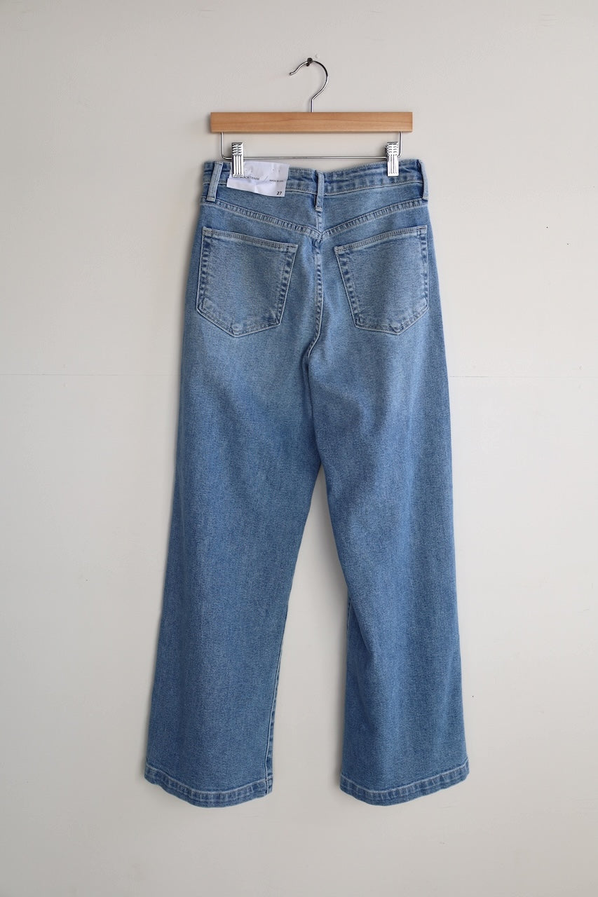 These high rise wide leg jeans bring an effortless, vintage-inspired feel to your everyday wardrobe. Designed with front patch pockets and a soft, lived-in wash, they offer a flattering silhouette that’s both relaxed and polished. Easy to dress up or down, they’re the pair you’ll reach for on repeat.