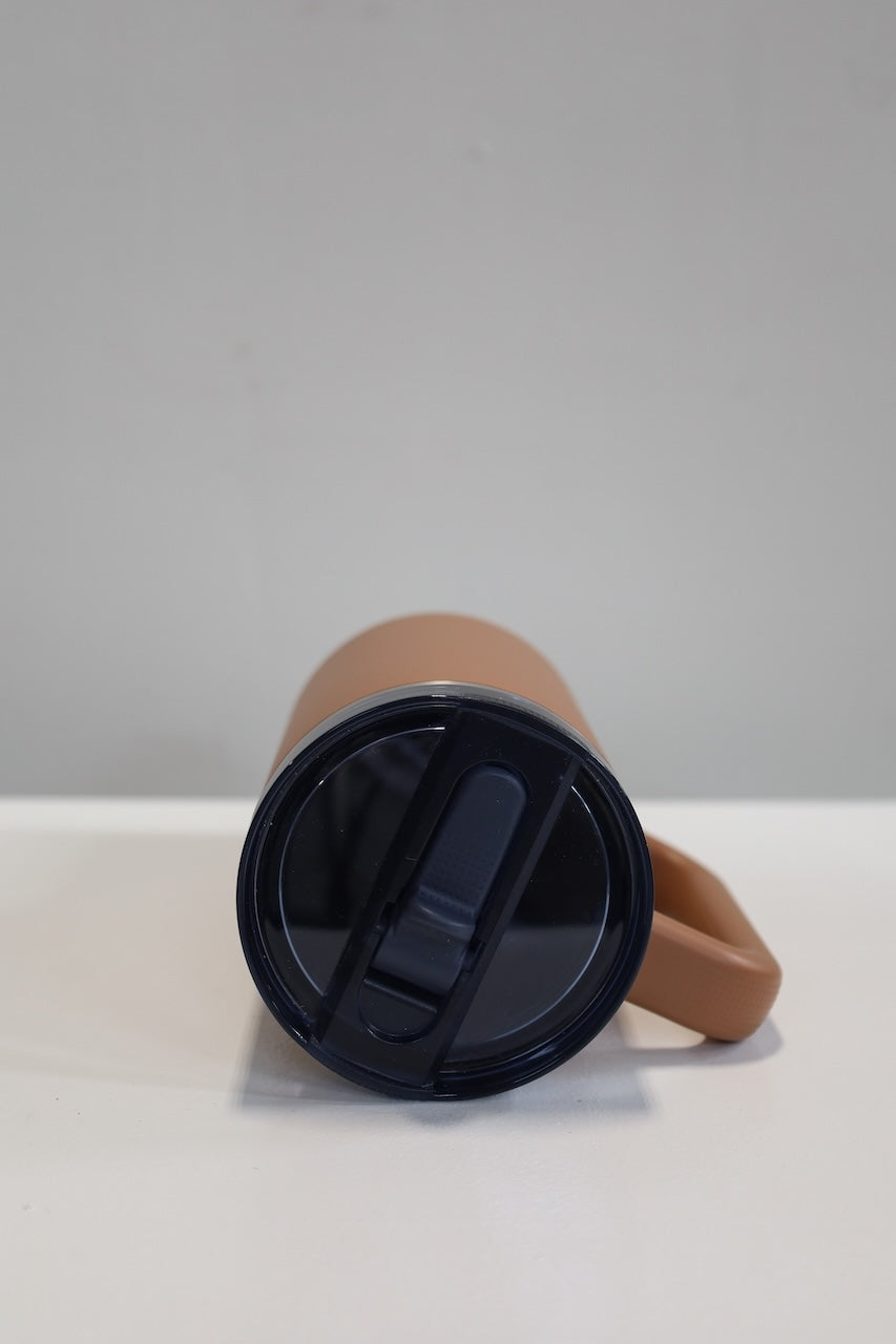 This travel tumbler is just what you need for all-day hydration. Take it with you to a high-intensity workout or on an extra-long commute to keep your drink cold for hours. The lid features a rotating cover with three positions: a straw opening, a wide mouth for drinking, and a full-cover top to prevent spills. The larger size even fits comfortably in your vehicle’s cup holder and comes with a rugged handle for carrying.