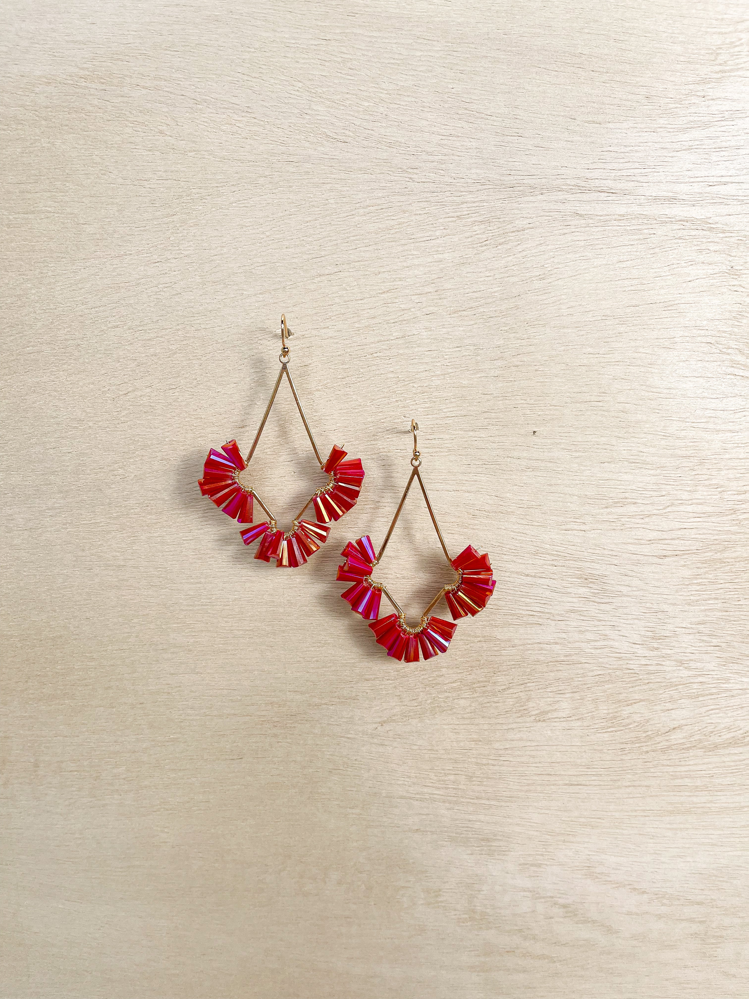 Add a pop of color to your accessory game with our Red Beaded Drop earrings. These playful earrings feature vibrant red beads and a touch of gold for a fun and fashionable look. Be sure to make a statement with these quirky and stylish earrings!