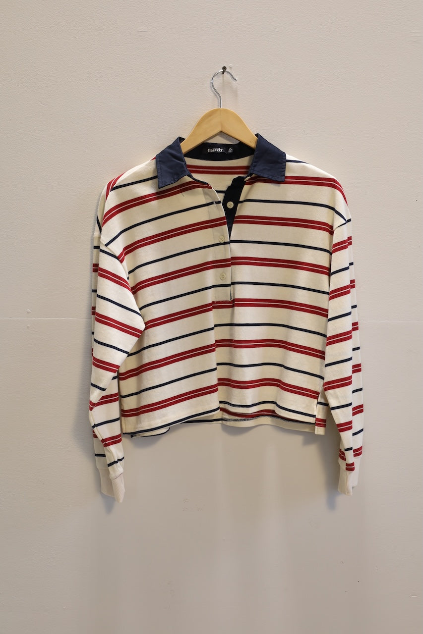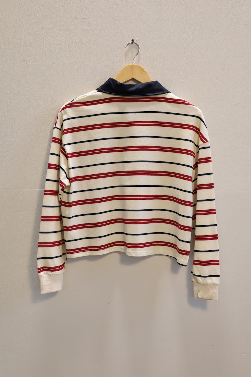 A rugby style top is a staple for any closet! With a slightly cropped and boxy fit, it's a modern take on a traditional favorite.