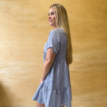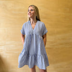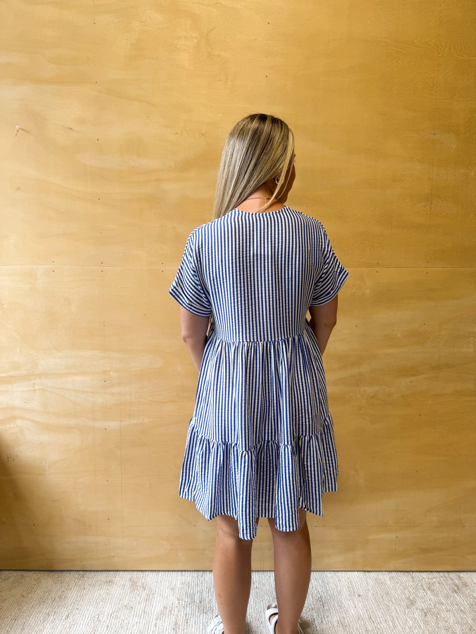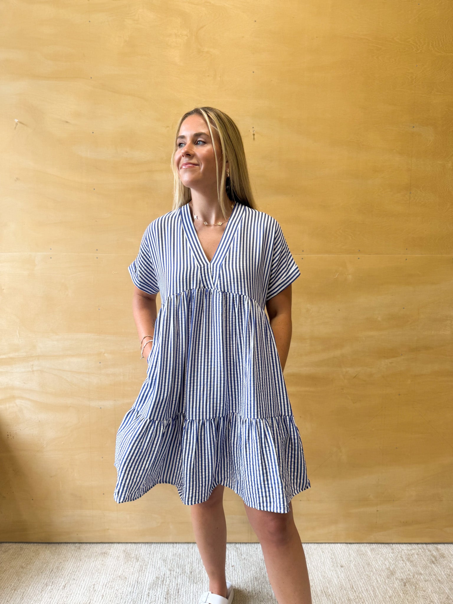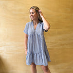 Breezy, effortless, and ready for all your summer wandering—the Scenic Route Mini features a relaxed fit, flattering v-neckline, and blue-and-white stripes for that coastal cool vibe. Wear it with sneakers or sandals for the easiest outfit of the season.
