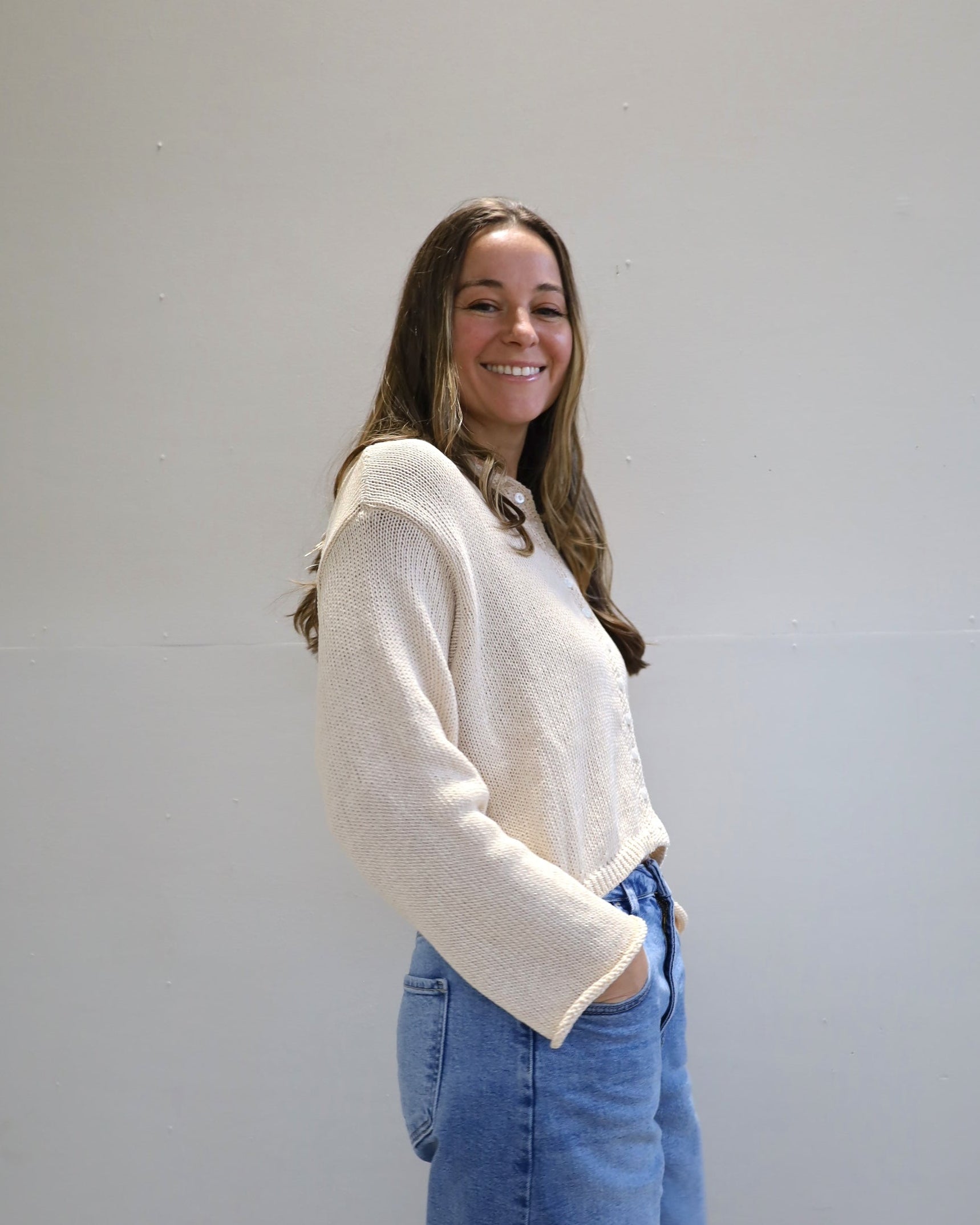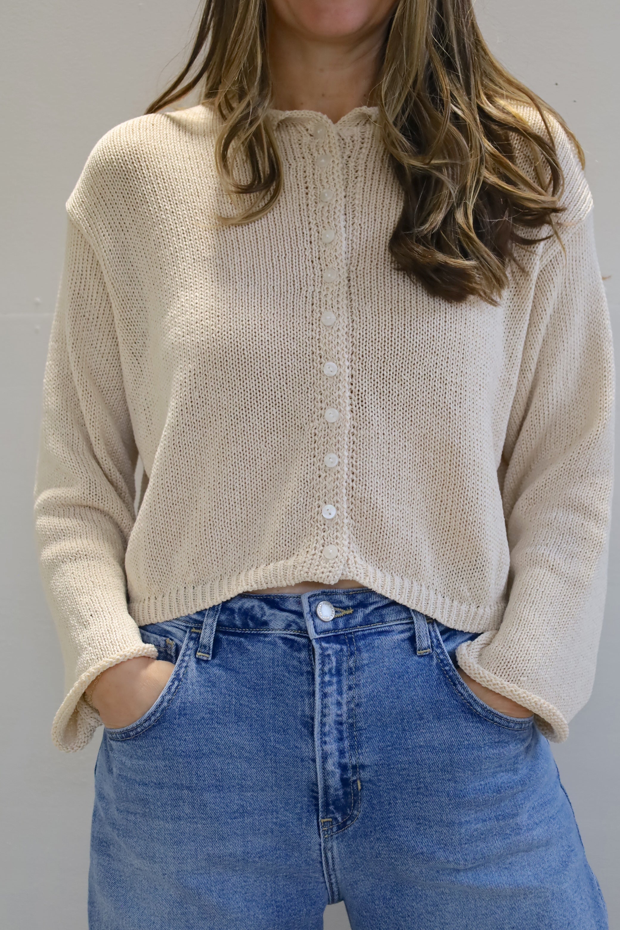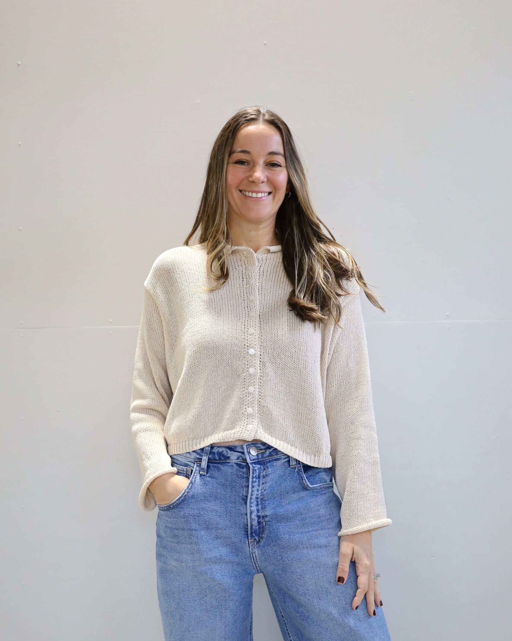 The soft texture, easy shape, and just enough detail—this button-up sweater is made for repeat wear. With a relaxed fit it’s the kind of piece that feels familiar but looks fresh every time.
