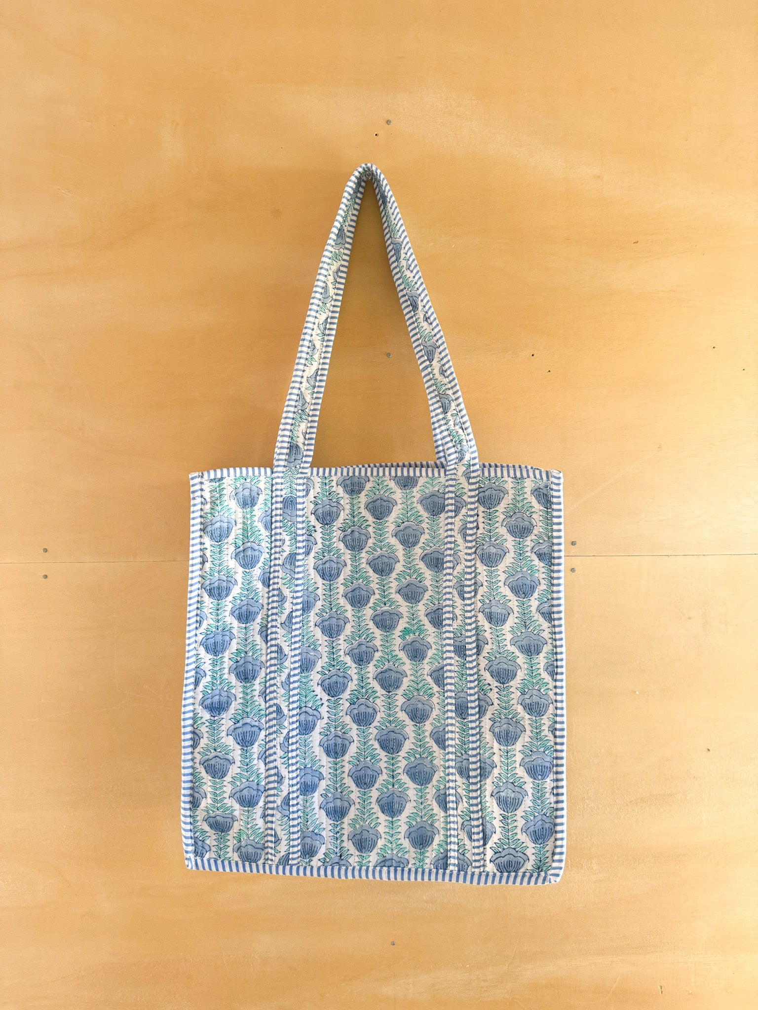 Introducing our Handmade Quilted Floral Tote Bag, a perfect blend of style and function. Ideal for the beach, errands, or everyday use, this medium-sized tote is both lightweight and durable.
