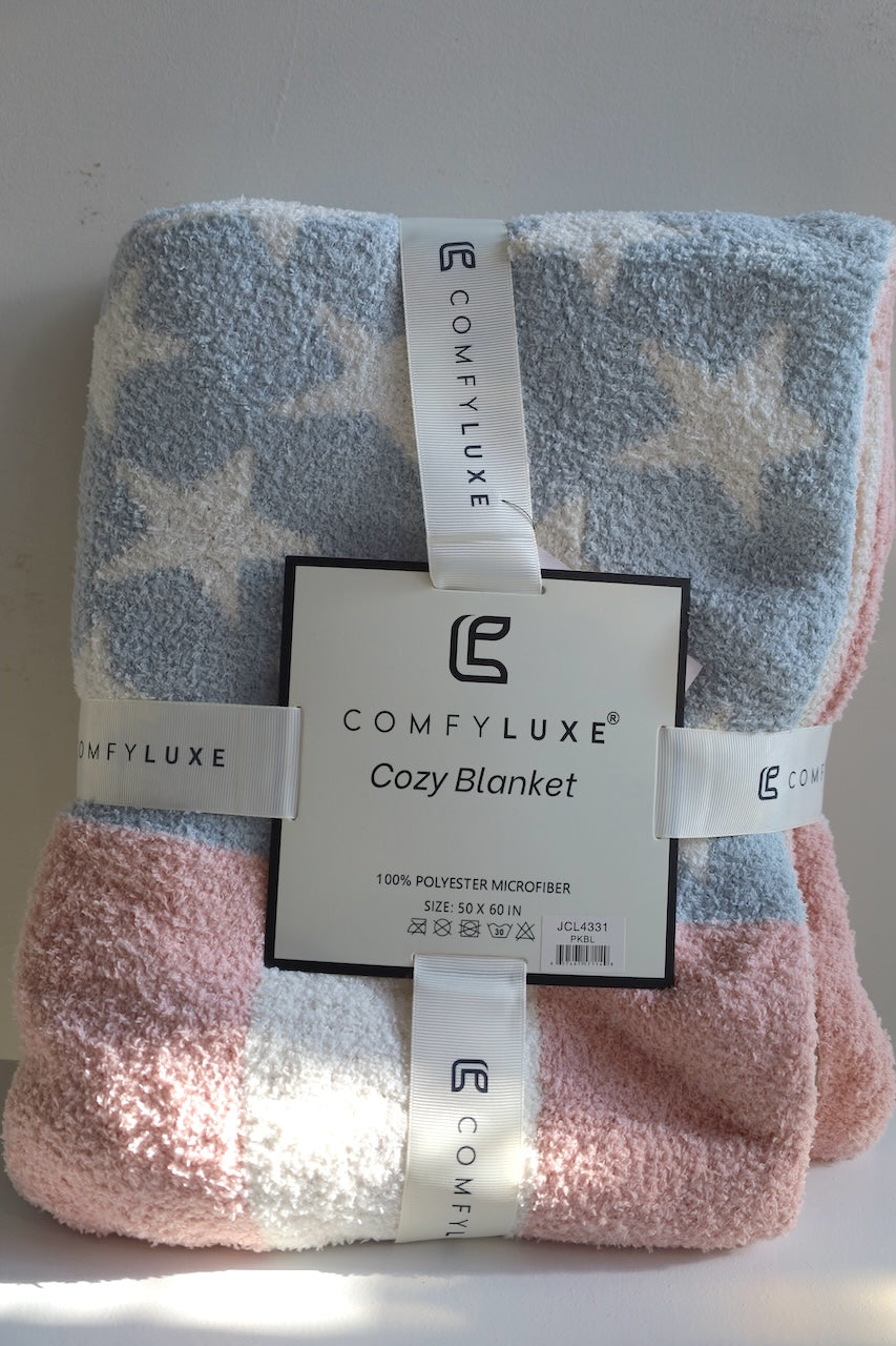 This ComfyLuxe blanket is softness you can see. Featuring a USA star pattern in pastel blue and blush, it’s plush, lightweight, and the perfect snuggle companion for the couch, bed, or cozy nights in. A must-have for anyone who loves cute, cloud-like comfort.