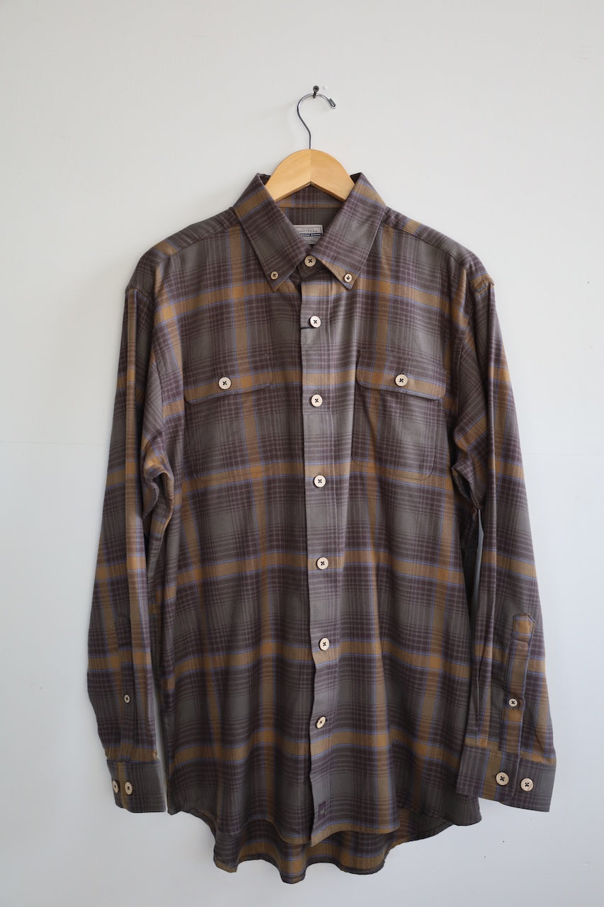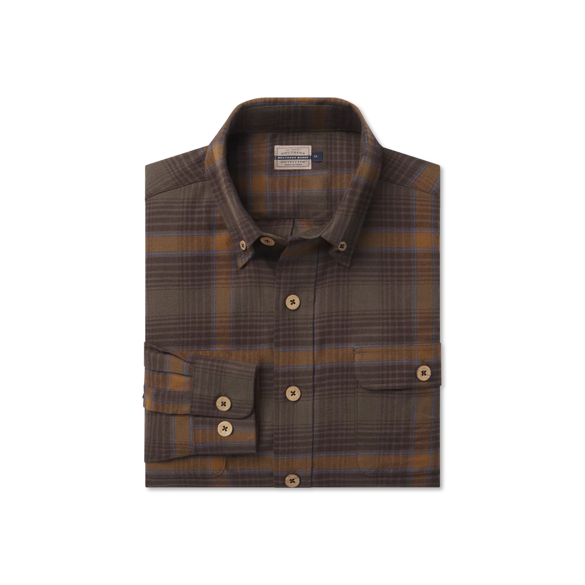 Whether your planning a weekend camping trip with the fam or getting ready to saddle up, our Woodruff Twill Flannel shirt offers a premium cotton fabric and classic plaid pattern making it a great choice for any occasion. Boasting brushed wood buttons and a chest pocket with flap, this comfortable shirt is best layered over our classic pocket tees.